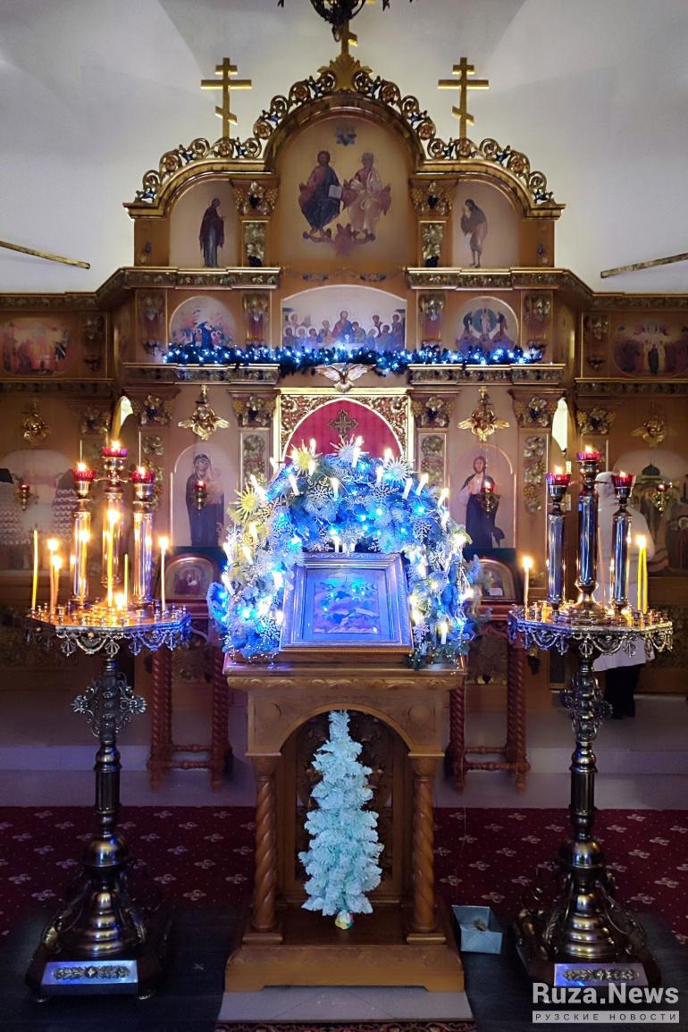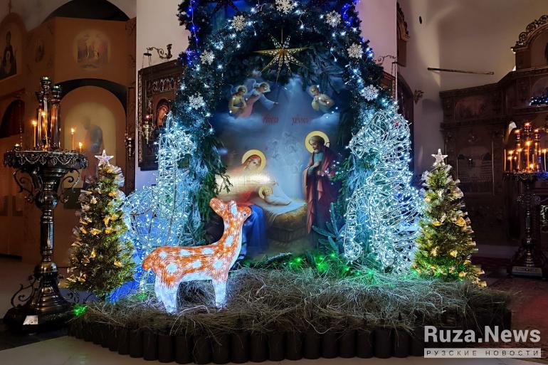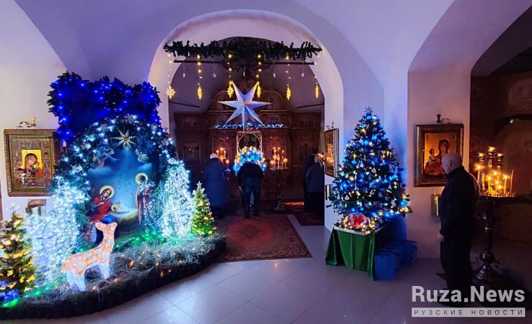 Традиционно в честь праздника собор украсили светящимися фигурками животных, зелёными елями с гирляндами, которые символизирующих вечную жизнь.