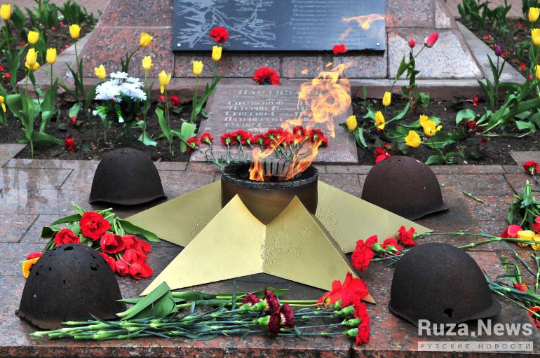 Дети и взрослые несли цветы к «Вечному огню» у мемориала Славы