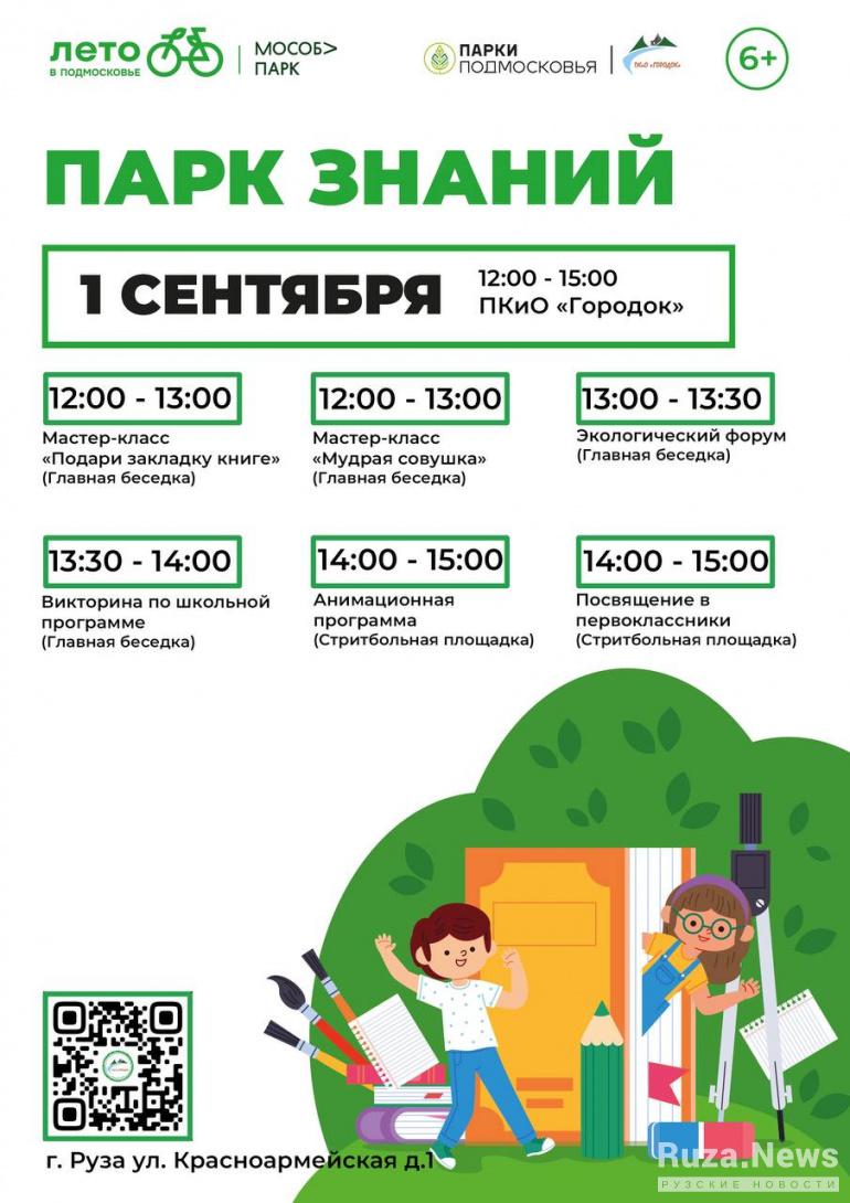 В рузском парке культуры и отдыха «Городок» состоится праздник, посвящённый началу нового учебного года. Для школьников проведут мастер-классы, викторины и посвящение в первоклассники.