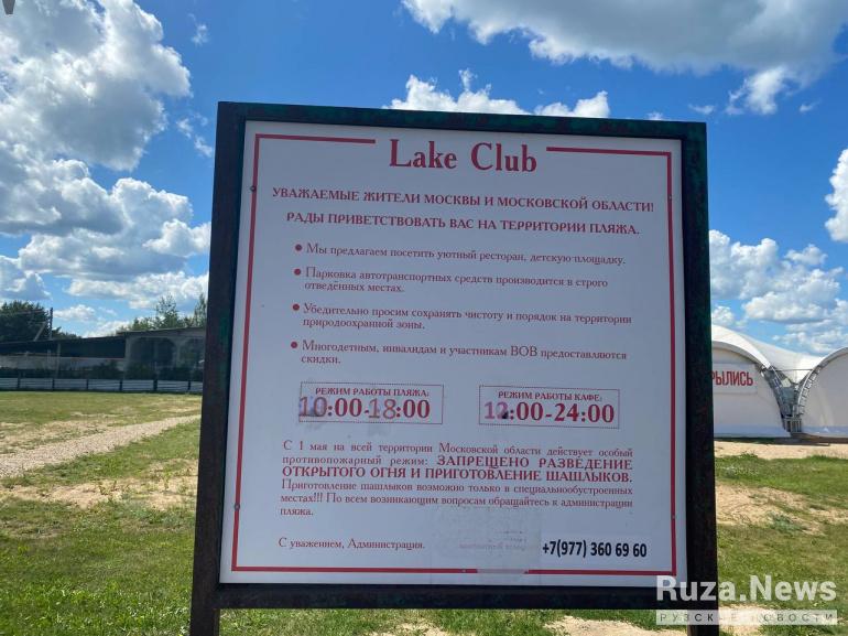 Второй из доступных пляжей на Озернинском водохранилище — «Lake Clab». По сути находится он напротив «Ice пляжа» и тоже минутах в семи от Рузы на автомобиле. Адрес: А-108, Минско-Волоколамский перегон, 31 километр, Рузское водохранилище (слева от моста).