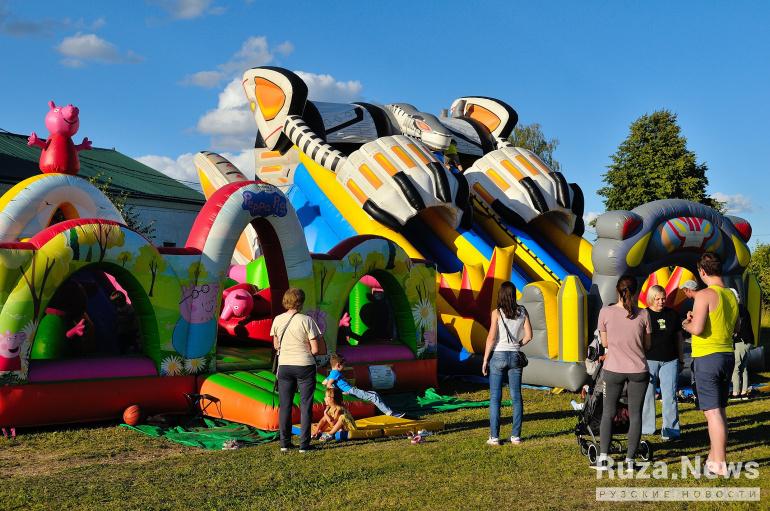 На стадионе около клуба в 11 часов начались спортивные турниры по футболу и волейболу, с 12 часов работала детская площадка. Ребята прыгали на батутах, катались на лошадях и ели сладкую вату.