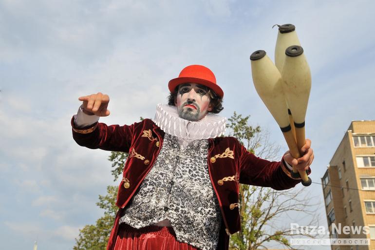 В центре Рузы в полдень начали работать точки ремесленников, торговые палатки, точки общепита и аттракционы. Жителей развлекали ростовые куклы, аниматоры и ряженые.