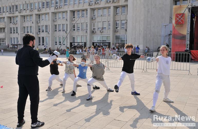 На площади перед зданием администрации округа тоже прошли праздничные мероприятия. Там проходили показательные выступления спортсменов, а ещё можно было сдать нормы на разряд ГТО.